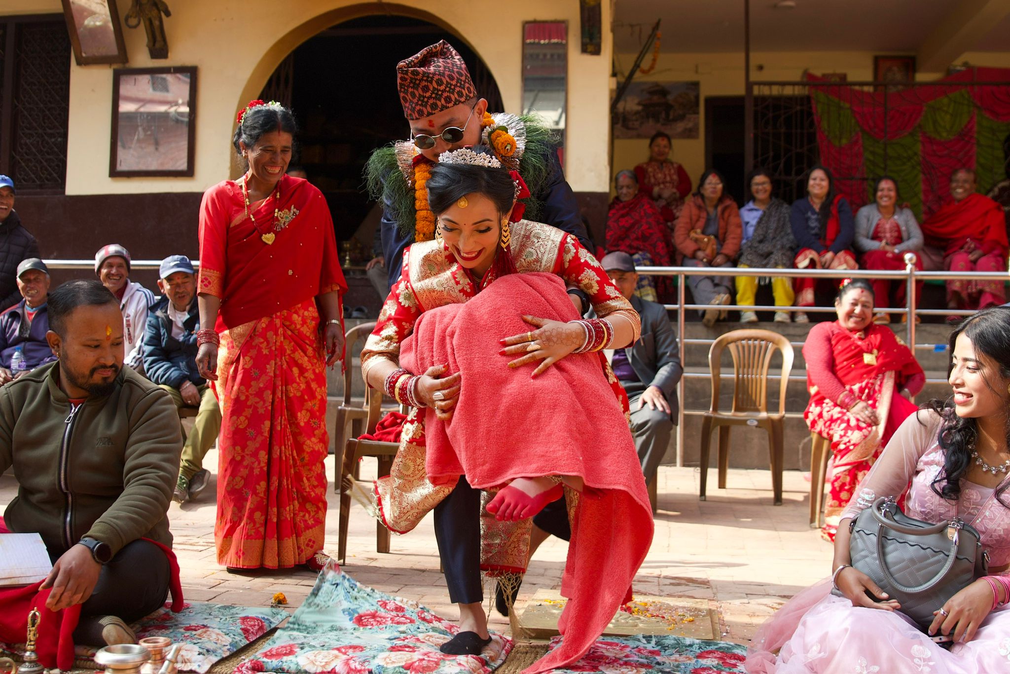 नेवारी परम्परा अनुसार विवाह गर्दै आङ टावा लामा शेर्पा र निरुता महर्जन